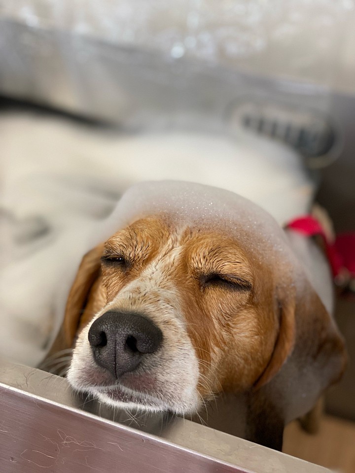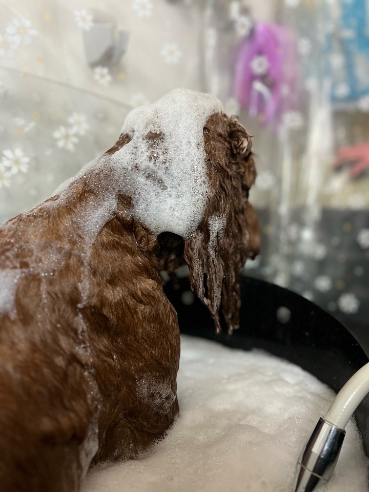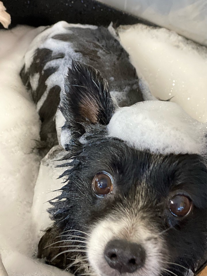 - SPA bath: Soaking in warm, bubbly water for 10 mins, followed by conditioner — for maximum coat softness and fluff!
