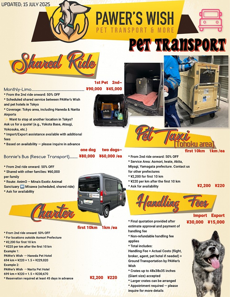 → Covers transport from PAWer’s Wish to Tokyo (Narita/Haneda) or vice versa
